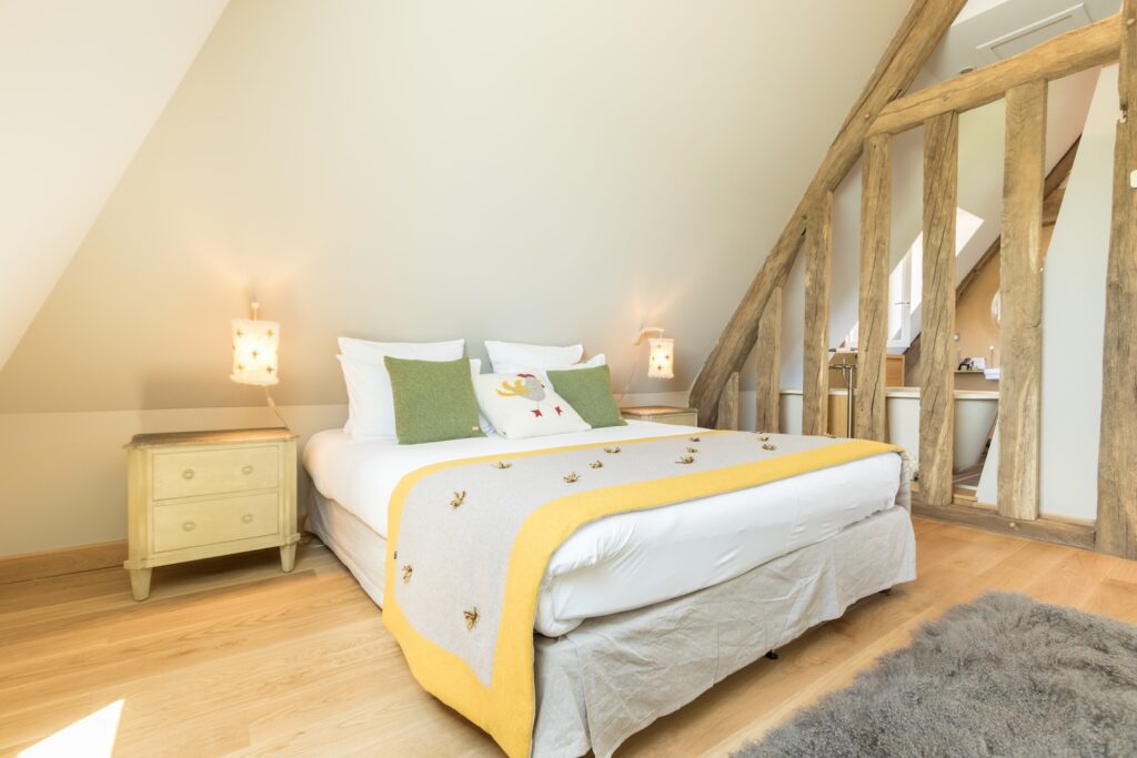 Continue your experience in the Pays d'Auge by staying in this superior 40 m2 room in the attic where simplicity and comfort blend harmoniously within our estate.