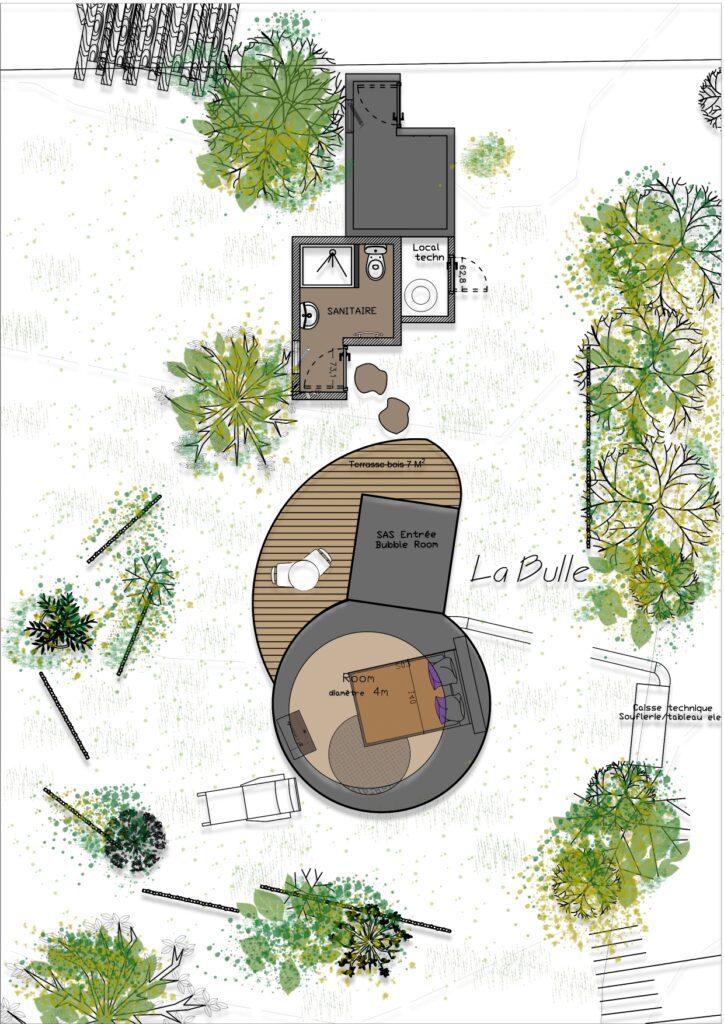 Notre Bulle, élégante et épurée, offre une vue panoramique sur le ciel étoilé et le paysage verdoyant environnant. Elle est conçue pour fusionner avec la nature tout en garantissant une intimité totale et un confort exceptionnel. Un cocon confortable pour une nuit sous les étoiles sans compromis sur le bien-être.