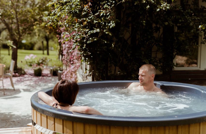 Profitez de votre spa nordique privatif chauffé à 37–38 °C sous le rosier grimpant.